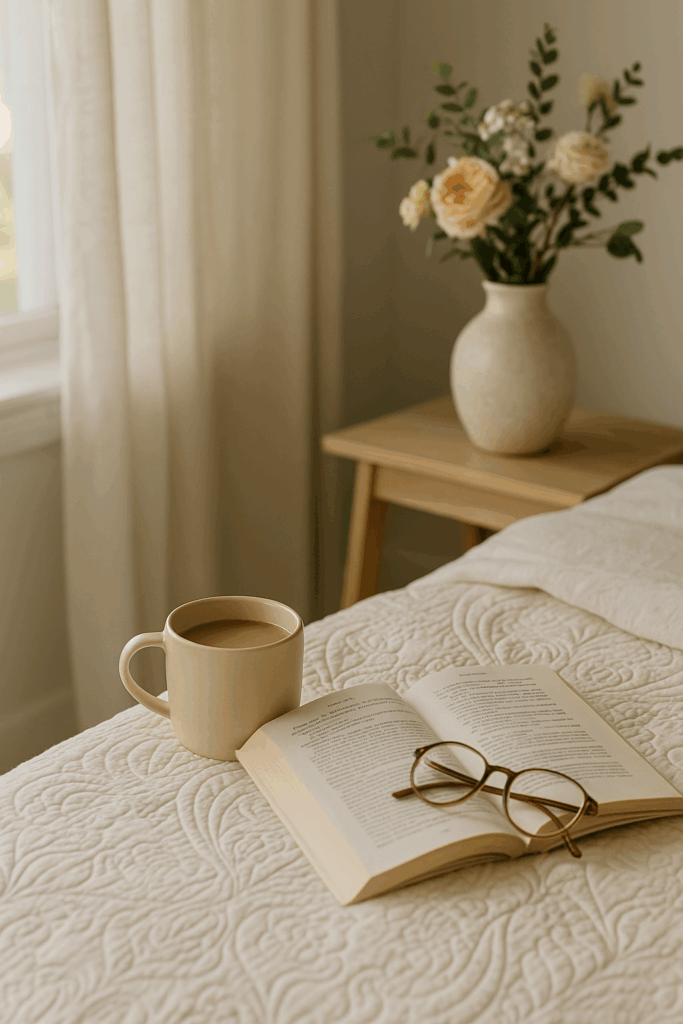 Light something beautiful. A candle, a diffuser, or even opening the blinds to let in the morning light. This small act reminds you that this moment matters.